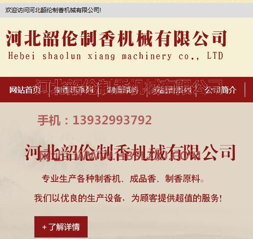 • 河北韶伦制香机械有限公司位于河北省邢台市宁晋县,距省会石家庄50公里,青银高速和308国道穿境而过,交通便利。 我公司主要生产各种佛香制香机、线香制香机、竹签香制香机、棒香制香机和各种异型香多功能制香机,前期制香机主要服务于本地市场,用于改变当地制香行业手工制香效率低、人工成本高、不利于大量生产等弊端。随着人们生活水平的提高和国家对佛教事业的支持与开放,全国各地香业市场蓬勃发展,庞大的市场需求也刺激了制香机市场的迅……     查看详情 >>